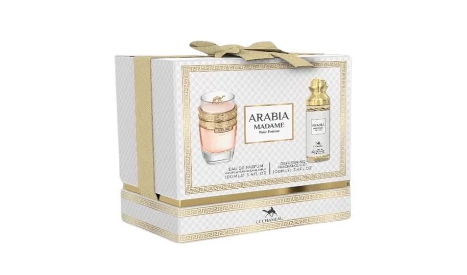 Set Arabia Madame 2in1 de Le Chameau es una lujosa propuesta olfativa diseñada para mujeres que buscan destacar con sofisticación y frescura. Incluye un Eau de Parfum de 100 ml y una niebla de fragancia ligera y refrescante, que juntos ofrecen una experiencia aromática versátil y duradera.